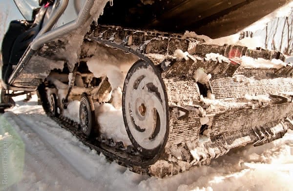 Der Grip den die Ketten auf dem Schnee und Eis entwickeln ist wahrlich überraschend. Egal wie stark man am Kabel reißt, es fast nicht möglich dem Antrieb Schlupf zu entlocken. Ganz anders jedoch im vorderen Bereich, die Seitenführung der Kufen die zum Lenken dienen ist zwar, entsprechenden Krafteinsatz vorausgesetzt, in Kurven recht überraschend, jedoch sind die Gefährte speziell bei Richtungsänderungen gewaltig untersteuernd unterwegs und müssen mit harter Hand von der neuen Richtung überzeugt werden. Man gewöhnt sich jedoch recht schnell an die Fahreigenschaften und kommt schon nach kurzer Zeit gut klar. Die Beschleunigungswerte liegen im Bereich eines normalen Motorrads und mit der Bremse sind beeindruckende Werte möglich. Wir erreichten auf unserer Tour auf den ebenen Passagen Geschwindigkeiten von über 80 km/h, jedoch fand der Großteil der Tour eher auf kleineren Wegen statt und war mit Durchschnittsgeschwindigkeiten von 10-30 km/h dafür verantwortlich, dass wir auf unserer etwa 100km langen Tour dennoch fast 5 Stunden unterwegs waren.
