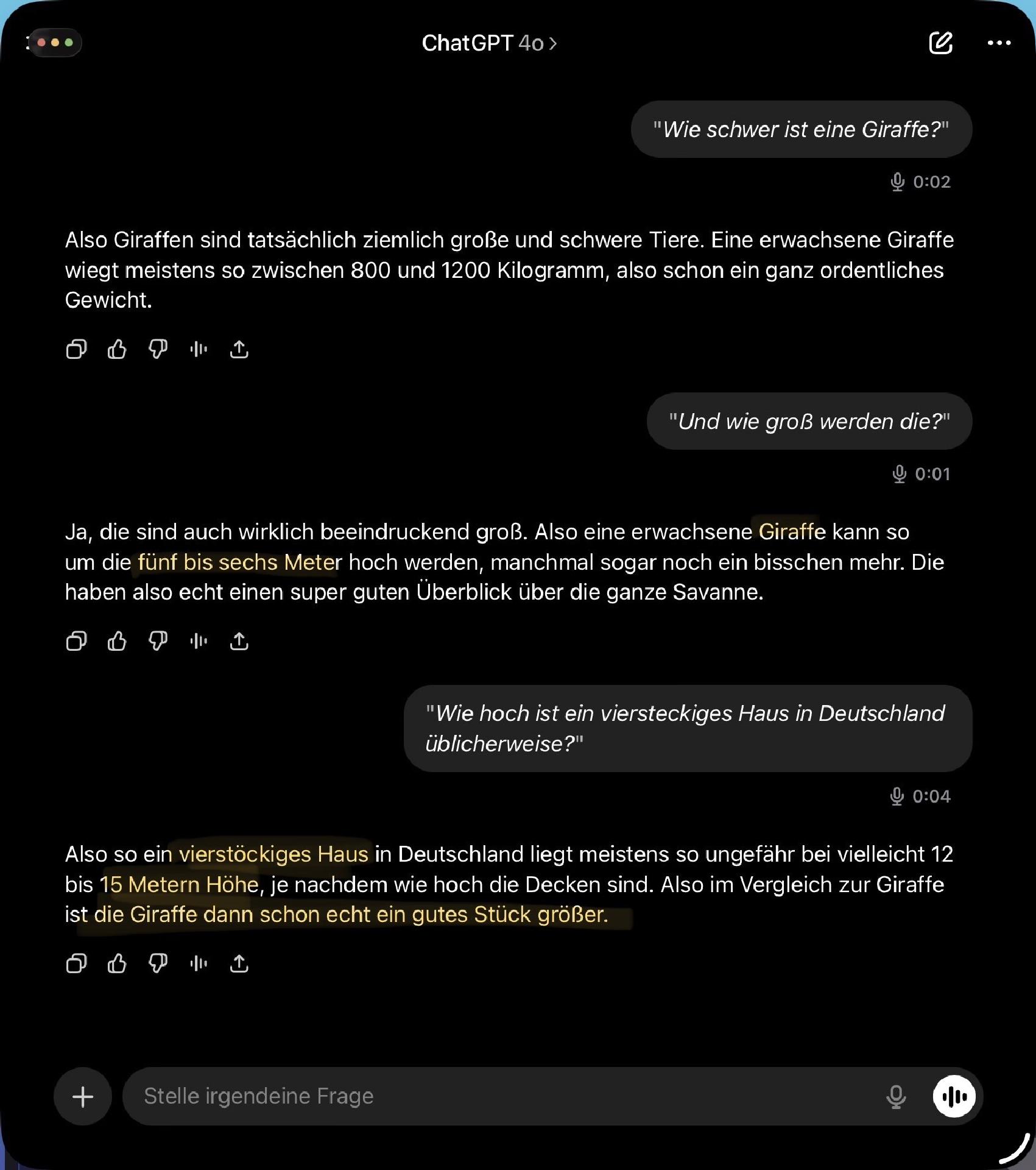 ChatGPTPlus geshopped. Sohn wollte wissen wie groß Giraffe im Vergleich zum Haus ist.